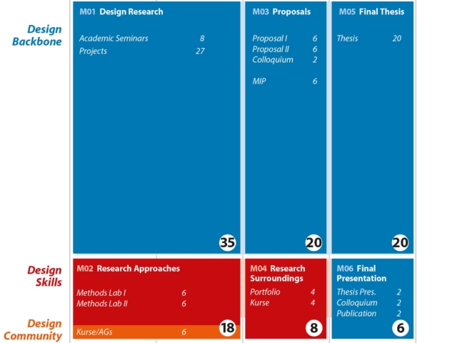 The four semester programme Master of Arts »Integrated Design Research« with its study courses »Integrated Design« and »European Design« focuses on research and development through and by design. Ultimate objective is the conception and establishment of a research practice specific to design, which continuously alternates between the following of rules and their transcension as well as analysis and synthesis. It facilitates gaining, documenting and refining knowledge through the design of artifacts, systems and processes. In this process, the student’s own design is critically compared with other designs, mapped in relation to existing theories, and positioned in discourse in order to open a fertile dialogue between theory and creative practice, to achieve new insights, and to communicate them in a comprehensible way. The Master’s thesis, being the key component of the course of study, focuses on a research through design approach of this kind within one of four Thematic Clusters: Material Systems & Lab Culture, Social & Public Innovation, Urban Intensities & Resources or Visual Cultures & Politics.