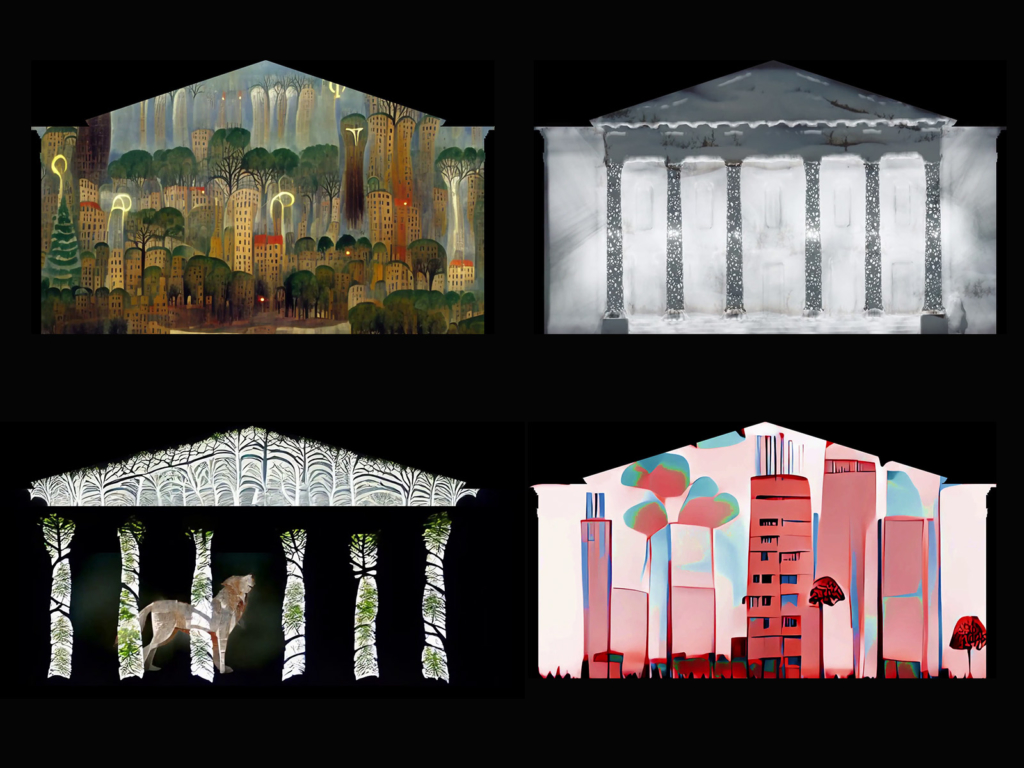Last spring, students from Köln International School of Design, Tampere University of Applied Sciences, Academy of Media Arts Cologne and Vilnius Gediminas Technical University, with the latter being the host institution, created a projection mapping installation which will be shown at the Vilnius light festival starting on 25th of January. During a summer school the work was created to commemorate the 700th anniversary of the city and combines projection mapping, animation and text-to-image AI. Historical references but also recent events and the students own impressions were used to craft text prompts, that transformed the façade of the Vilnius town hall, guided by drawings of the underlying geometry.