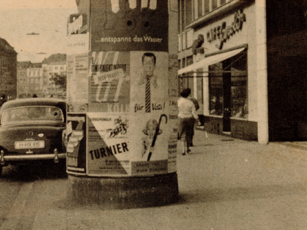 “Kunst an Kölner Litfaßsäulen” is an initiative that transforms existing advertising pillars into an open air museum. The initiative offers a direct form of cultural participation by making artistic works visible throughout the city every day, bringing importance to art and culture in public space. “Time Capsule” shows a page from an old Filipino magazine, where an advertising pillar in Cologne from the 1960s can be seen. The concept of placing an image of an old Litfaßsäule onto one of today highlights an aspect of public objects and images — how they can act as time capsules linking the past and present.