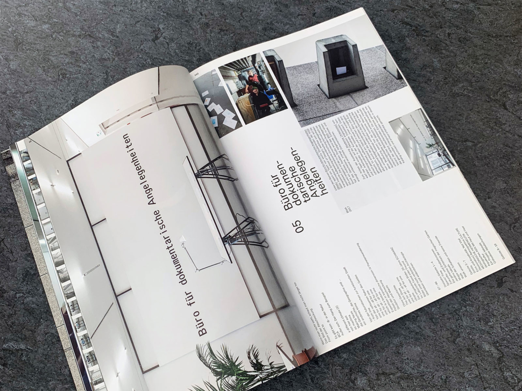 The exhibition, divided into six temporal sections, was characterized by constant change of artists (100 names), exhibition contributions, dance, performances, concerts and discussion rounds, in which data and background material of all actions were cyclically collected, processed and made accessible to visitors in a new form. A hybrid between office and exhibition space was created, through which the special nature of the exhibition was captured in an all-encompassing way and incorporated into the creation of a catalog. The focus of all participants was the examination of the topic of the archive – the question of the function of the archive as a place of memory and the questioning of existing and future categories and ordering systems of archiving. What role does the archive play in artistic practice and how are dynamic and hybrid exhibition formats reflected in it?