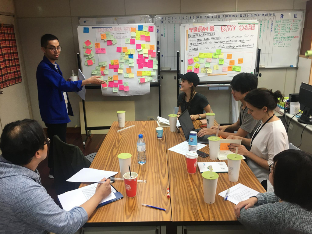 Split into six teams, the participants over the course of the week analyzed in particular the following topics: Day Care, Assistive Device, and Home Care with some special design questions on the agenda: Firstly, how to equip new care workers with the necessary professional skills and mindset to take care of the elderly, for example for those with dementia? Secondly, how to support the elderly with disabilities with tailor-made design devices that help to improve daily life and routine? And thirdly: How to build a reliable design eco-system for home care workers?