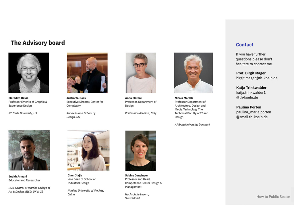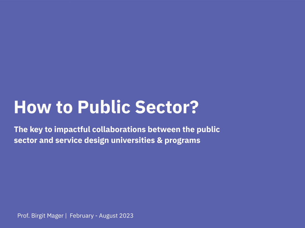Service design is taught in BA/MA and PhD programs at around 350 universities worldwide, and many universities collaborate with the public sector in the field of service design. The research project »How to Public Sector?« under the direction of Prof. Birgit Mager and with the support of Paulina Porten and Katja Trinkwalder at the Köln International School of Design, TH Köln, aims to record and evaluate these collaborations. In the process, collaborations are collected, evaluated on a meta-level and systematized in order to derive case studies and recommendations for action. Finally, a publication and a conference will document the success factors and multiply the results of this research. Furthermore, this research will indirectly build and strengthen the network between service design programs.