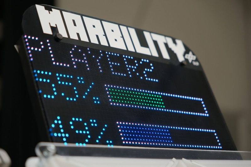 How can we engage people with little or no knowledge of quantum computing and quantum physics? How can we show dynamics between quantum gates, entanglement, and probability in a fun and accessible way? Marblebility is an educational and entertaining game to introduce quantum computing to a broader audience. How do we do this? In the game, you and your teammate each control a qubit and try to score the correct probability given to you. You interact with gates and learn about probability and entanglement. With the aesthetics of Pinball and Plinko–widely-known, nostalgic games that are easy to understand–we attract people of all ages and backgrounds.