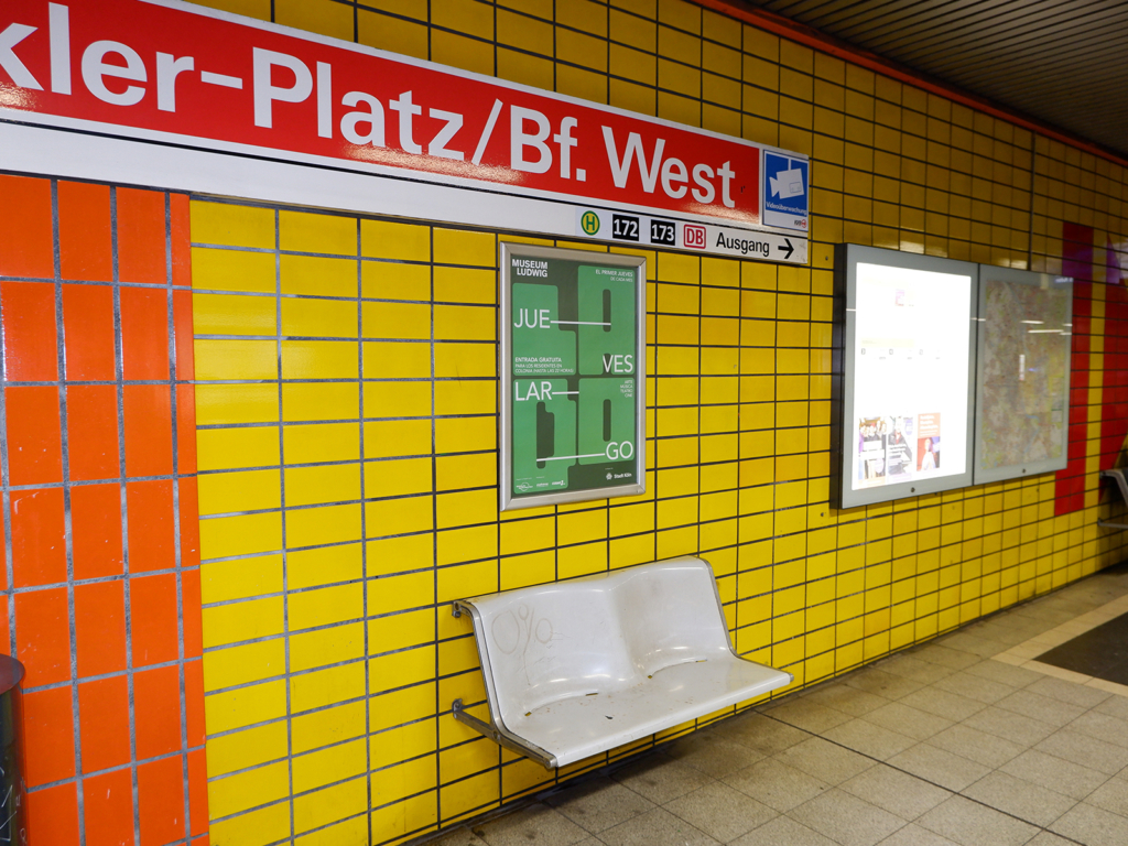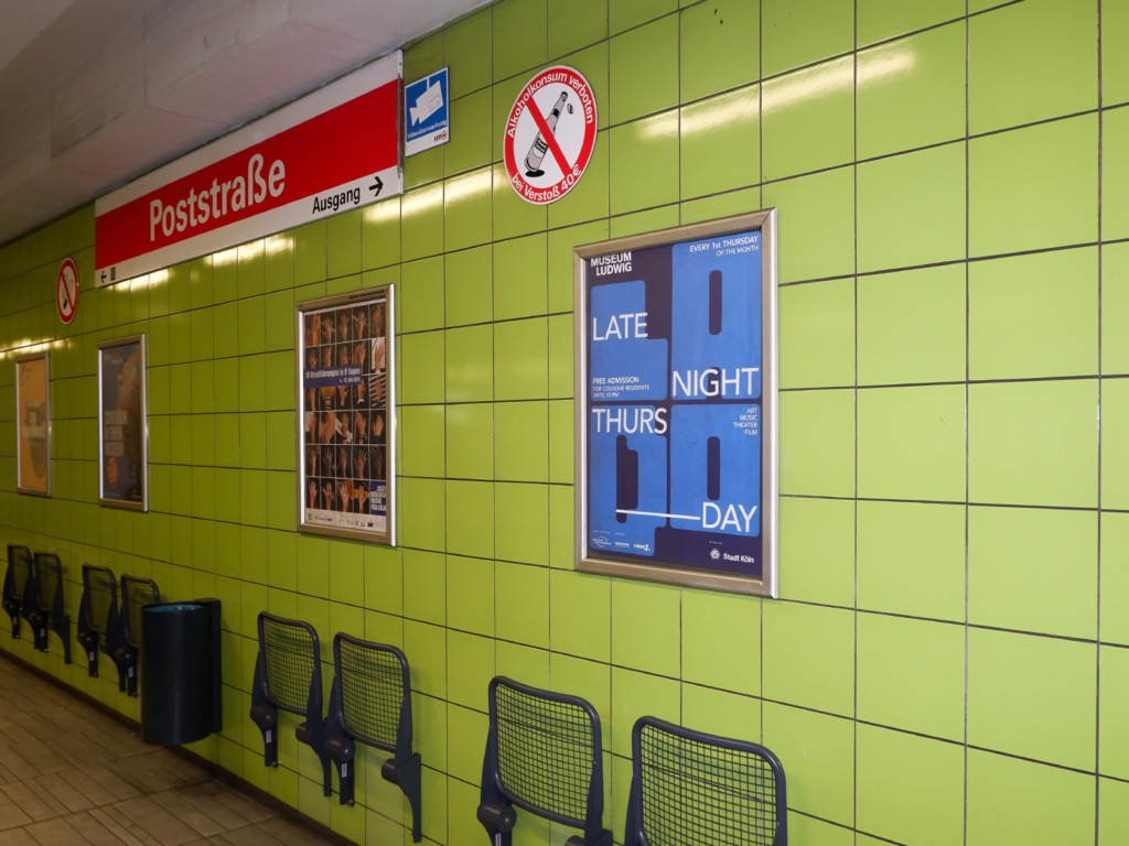 The Museum Ludwig event was advertised in the same look for around eight years until a new design was created in the winter semester 23/24 in collaboration with KISD. Under the direction of Prof Michael Gais, 17 students each created a complete, cross-media design concept. The museum then decided in favour of Paul Meierkord’s design, which has now been in use for several weeks. Among other things, Paul Meierkord developed posters in four different languages and corresponding colours. The posters have been on display in underground stations and on advertising pillars in the city of Cologne over the past few weeks.