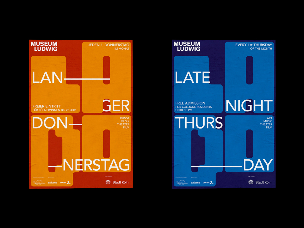 The Museum Ludwig's "Long Thursday" has recently been redesigned by KISD student Paul Meierkord. The concept was developed in a project under the direction of Professor Michael Gais in winter semester 2023/24.