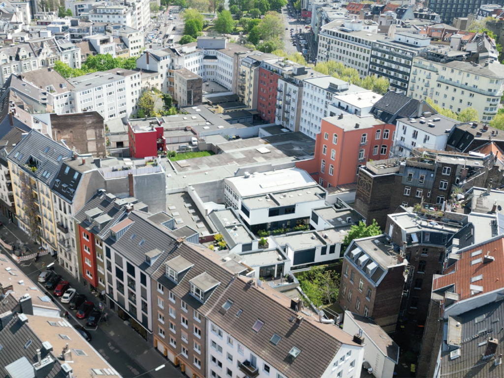 As sites of the edible city, the study focuses on Cologne’s large courtyards, which were created by perimeter block development in the late 19th and early 20th centuries and are particularly well suited for transformation into urban kitchen and community gardens. Most courtyards are developed, neglected, and often forgotten spaces in the city that serve as dumping grounds for waste. »Refarm the City« is dedicated to the systematic study and transformation of these courtyards into spaces of possibility for a new urbanity, opening up alternative forms of participation in the city and society. The courtyard in Cologne’s Neustadt-Nord, surrounded by the buildings of Hansaring, Lübecker Straße, Maybachstraße and Sudermannstraße, serves as a temporary »real city lab«. At the same time, it is used by the YMCA Cologne (CVJM Köln e.V.) as a club headquarters and by the Tafel Köln – Distributing instead of Destroying! (Tafel Köln – Verteilen statt vernichten! e.V.) as a food distribution center.