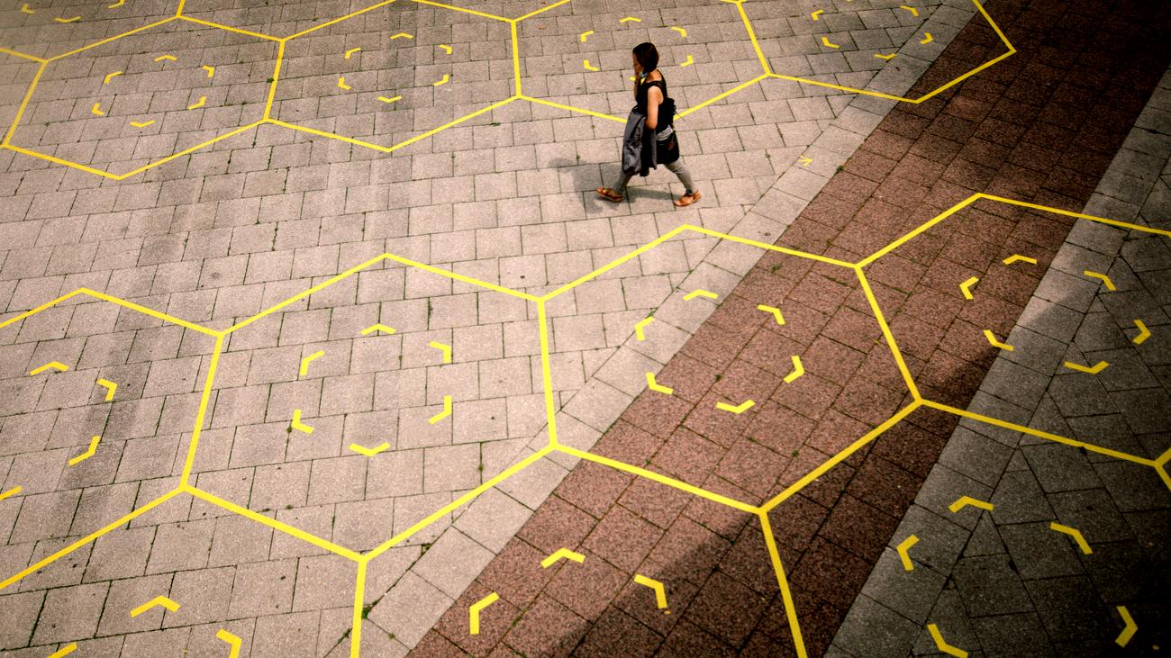 Image: Design work »Social Distancing«, Ebertplatz, Cologne, as part of the project »Assemble | Disassemble«, 2020.