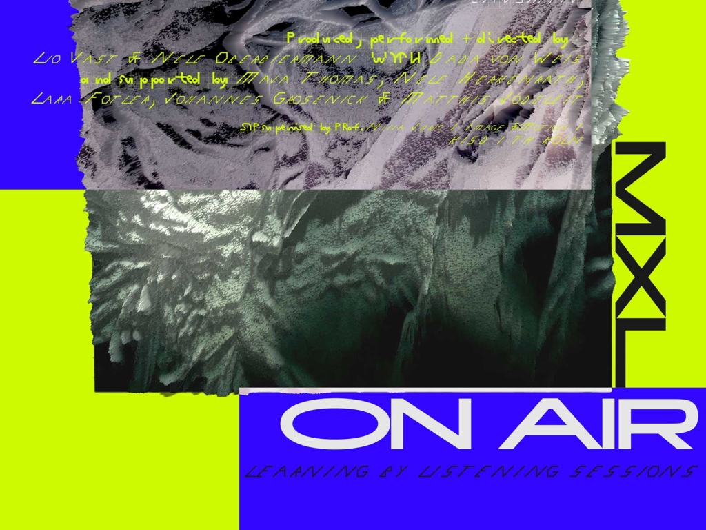 The focus is on visualising live setups of media art productions, performative working methods and experimental audio-visual environments, and how bodies perform in them as they are being created. The deliberate opening of the rehearsal space enables feedback situations and iterative improvements as an integral part of performative design and relational design processes. MXL ON AIR thus reflects the working methods of the Motion Experience Lab as a learning and production environment in which experimentation, failure, adaptation, redoing and refinement are central elements of innovative image and motion design practice, usually also involving elements of interaction.