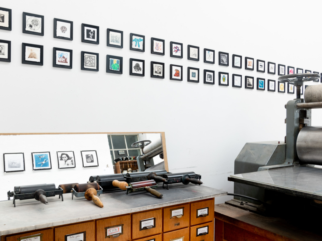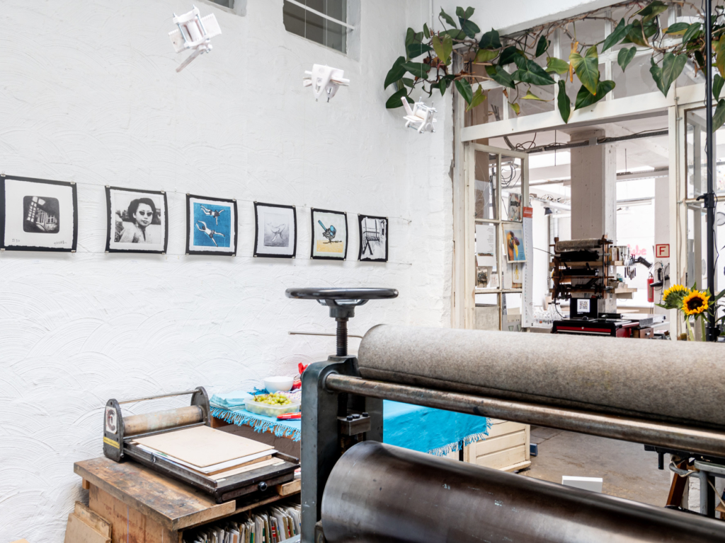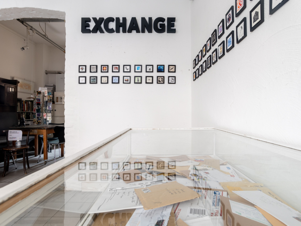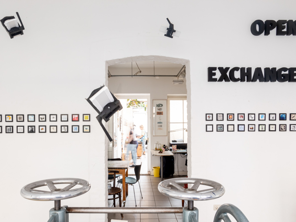 As a follow-up project, the two of them organised a print exchange for Open Press-owners. Participants created an edition of ten original 7x7cm prints, which were sent to Cologne, randomly exchanged for nine prints by other printmakers, and then sent back. More than 300 creatives from 26 countries joined in.