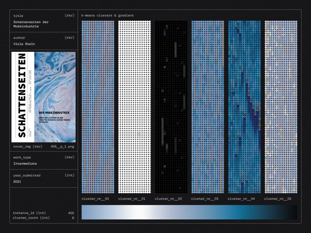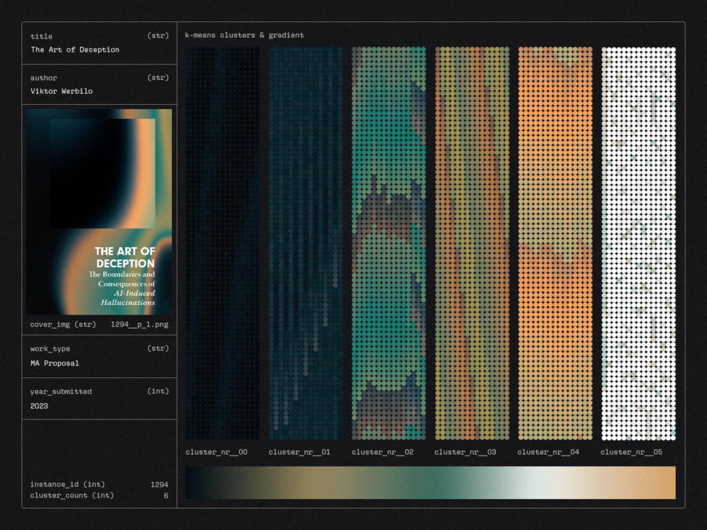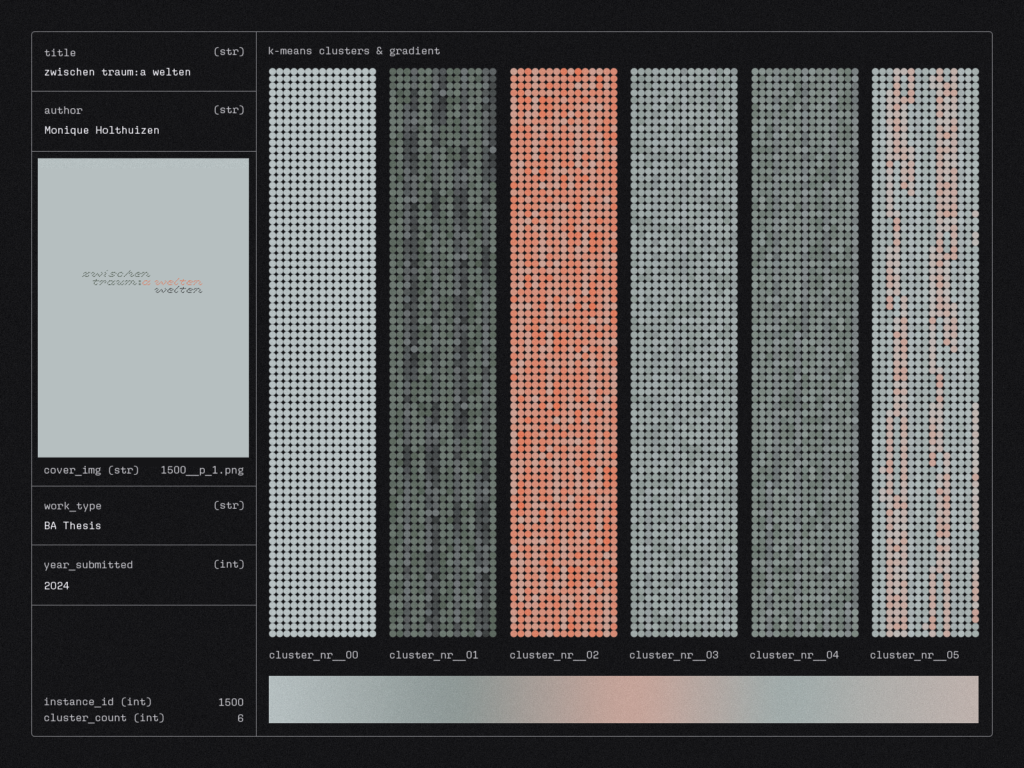 In his Bachelor’s thesis, Robert Halbach explores application potential and limitations of implementing AI components into digital services. As a practical study, the work revolves around the digital archive of KISD – a decade-old platform containing student works dating back to the pre-2000s.
