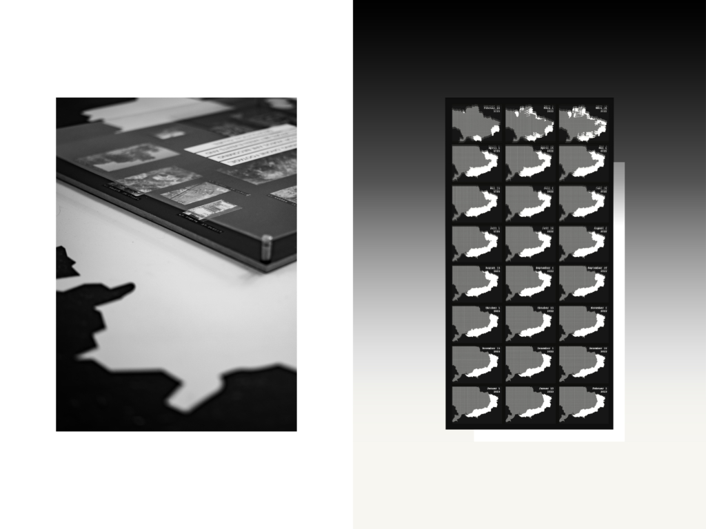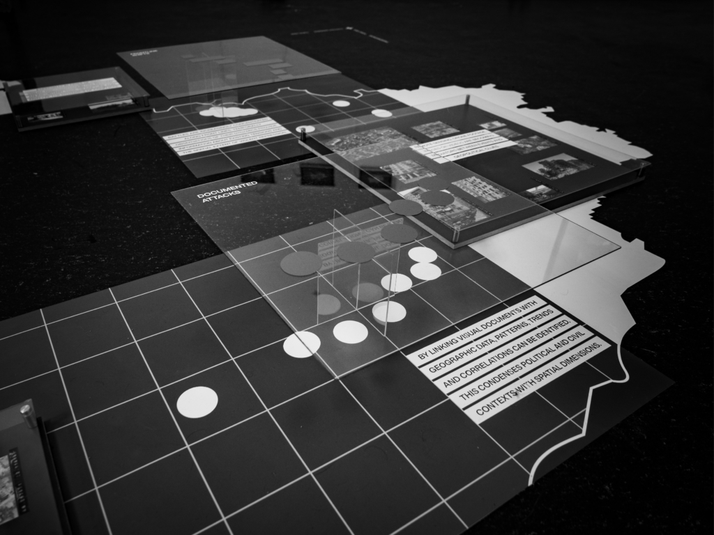 In addition to theoretical reflection and analysis, the thesis includes a conceptual realization in the form of an installation. It discusses war as a highly dynamic geopolitical actor. The exhibition provides a practical illustration of my theoretical findings and a deeper insight into the complexity and multi-layered nature of geopolitical issues. Accompanied by time-based media, the work sees itself as an experimental attempt at revealing digital dynamics in order to create new perspectives and approaches that raise awareness of the diverse influences and processes in conflict regions with a focus on civil society. In addition to gaining interdisciplinary knowledge, the research work also aims to raise awareness of the key role of design in the study of geopolitical circumstances and to establish the design discipline as an essential component of geopolitical research.