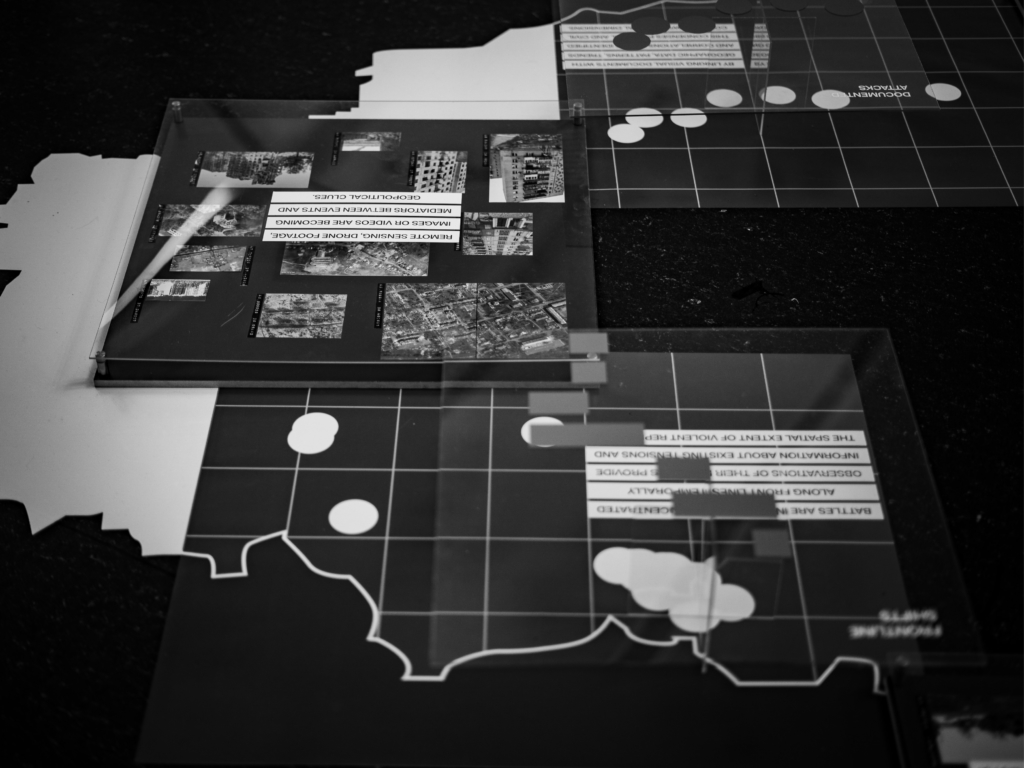 The work was primarily inspired by media observations at the beginning of the Russian invasion of Ukraine in February 2022, in which publicly available images were increasingly embedded in interactive maps and played a prominent role in the representation, assessment and tracking of war events. However, web-based maps designed to illustrate the changes and dynamics of a conflict showed to be underrepresented and which led to a missing understanding of war developments. To address this problem, various media sources – including satellite images, drone footage and published images on social media, as well as already prevalent interactive maps – were analyzed, cartographically reconstructed and evaluated to illustrate the changes and developments, as well as effects in the dynamics of war.