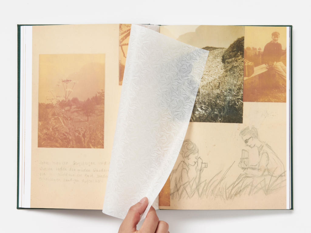 To extend the life of the images, Byron digitally scanned, archived, and transformed them into an artistic photobook. The book was inspired by the family photo album in the photographic collection — green fabric cover, photos scattered through pages, with glassine inserts in between. The process of sequencing helped design the narrative arc, merging both historical information and visual storytelling. Since the photobook journeys through the combined photographic life of Annemarie and Nathaniel, the photobook allows the reader to experience moments with the couple as they have happened in the past.
