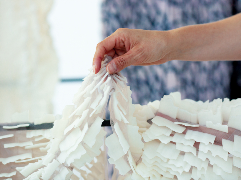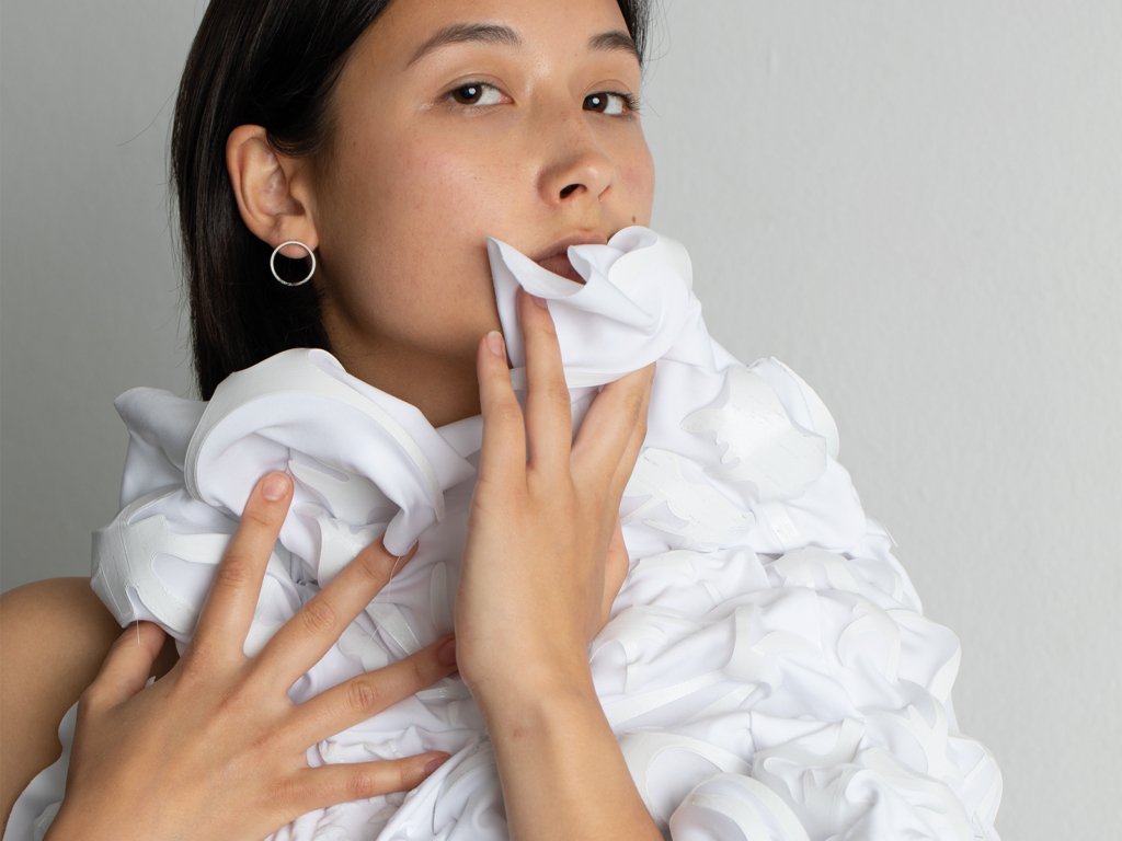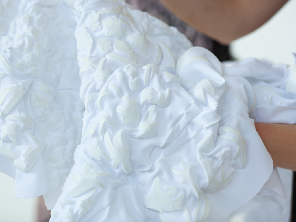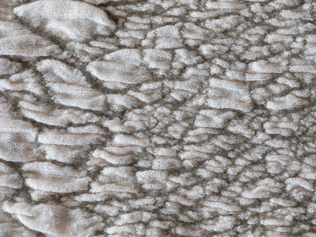 These pieces of textile may be placed onto the body. They do not only recreate a body’s form from a magnifying perspective, but also evolve differently depending on the technique applied.