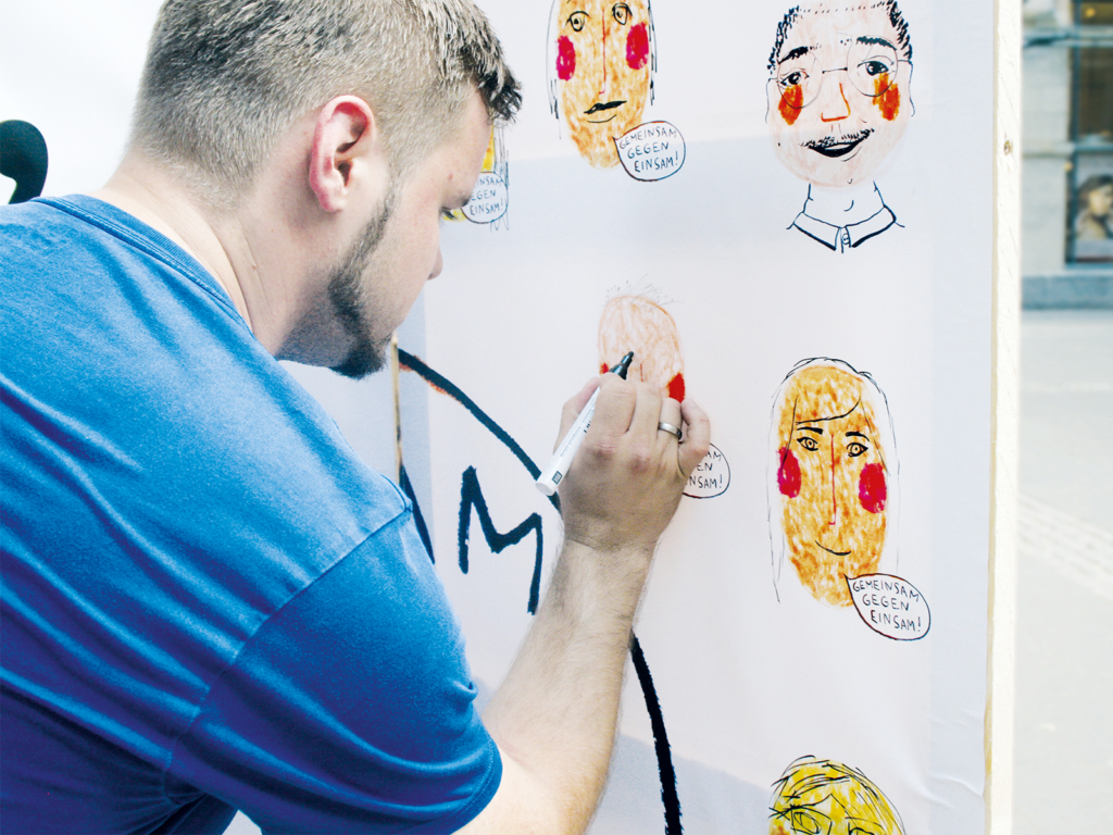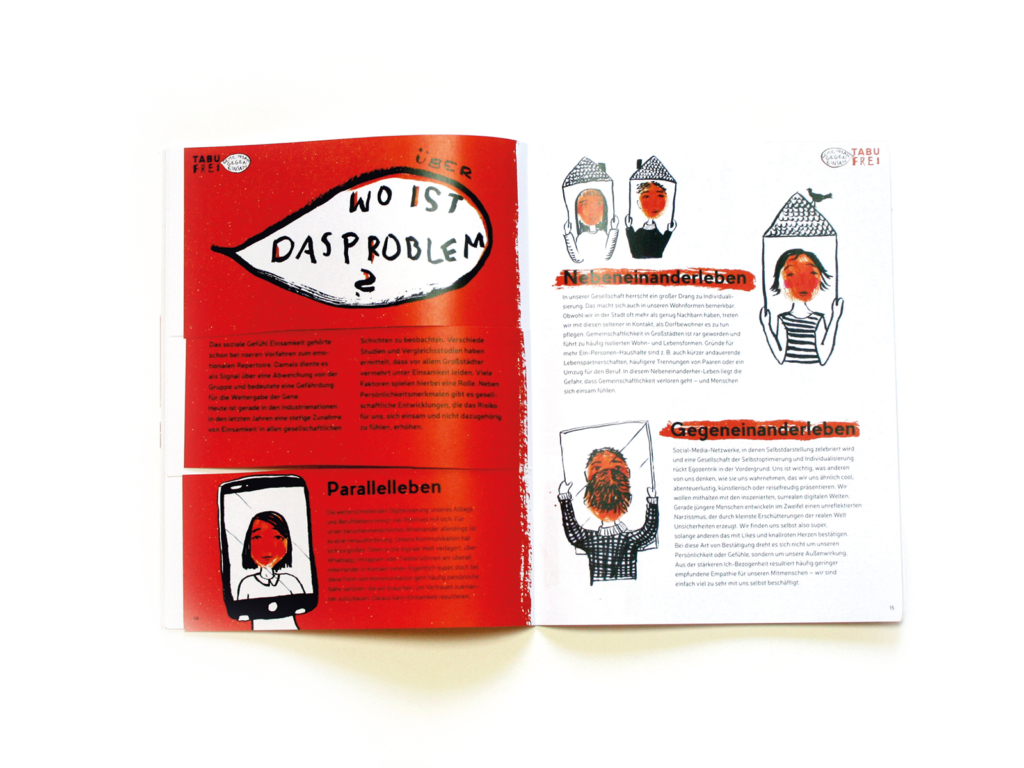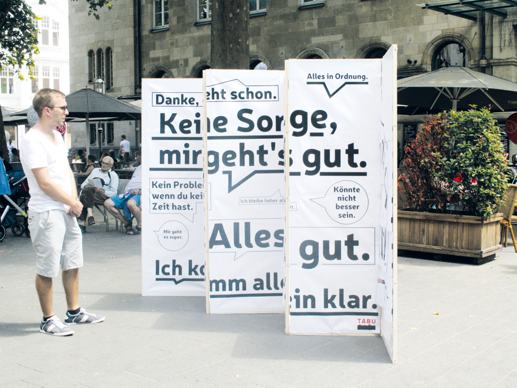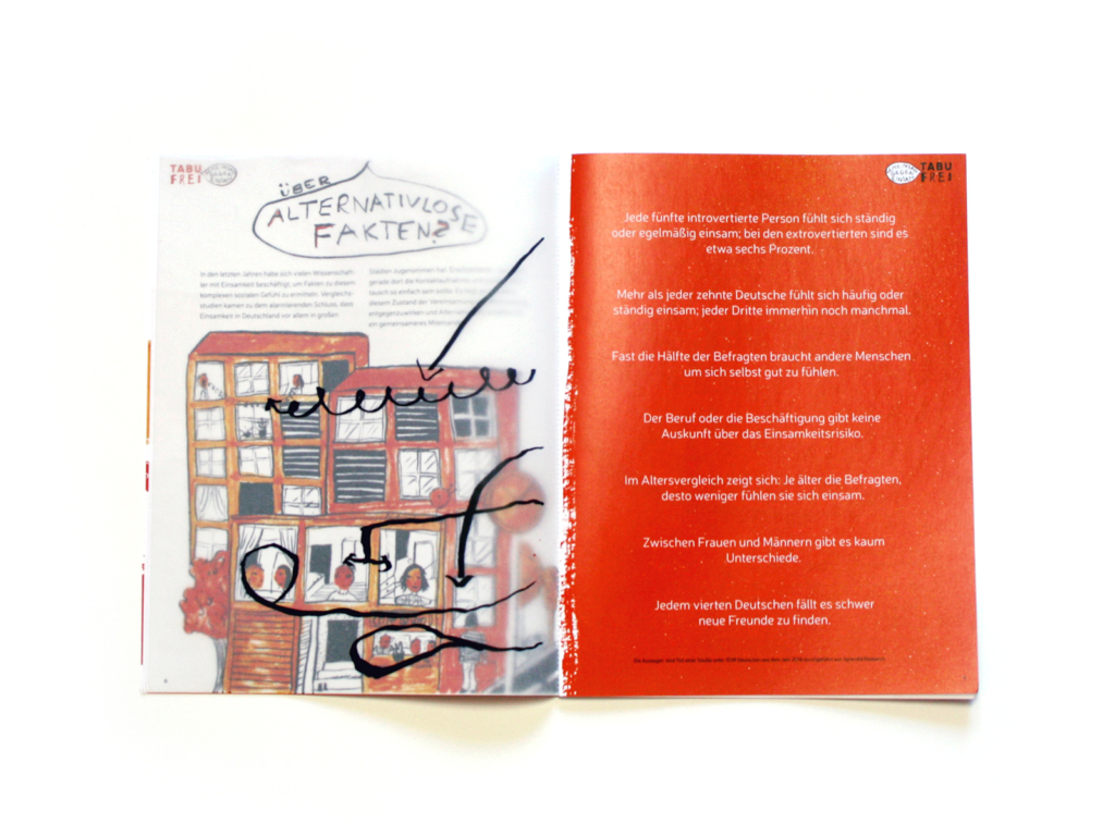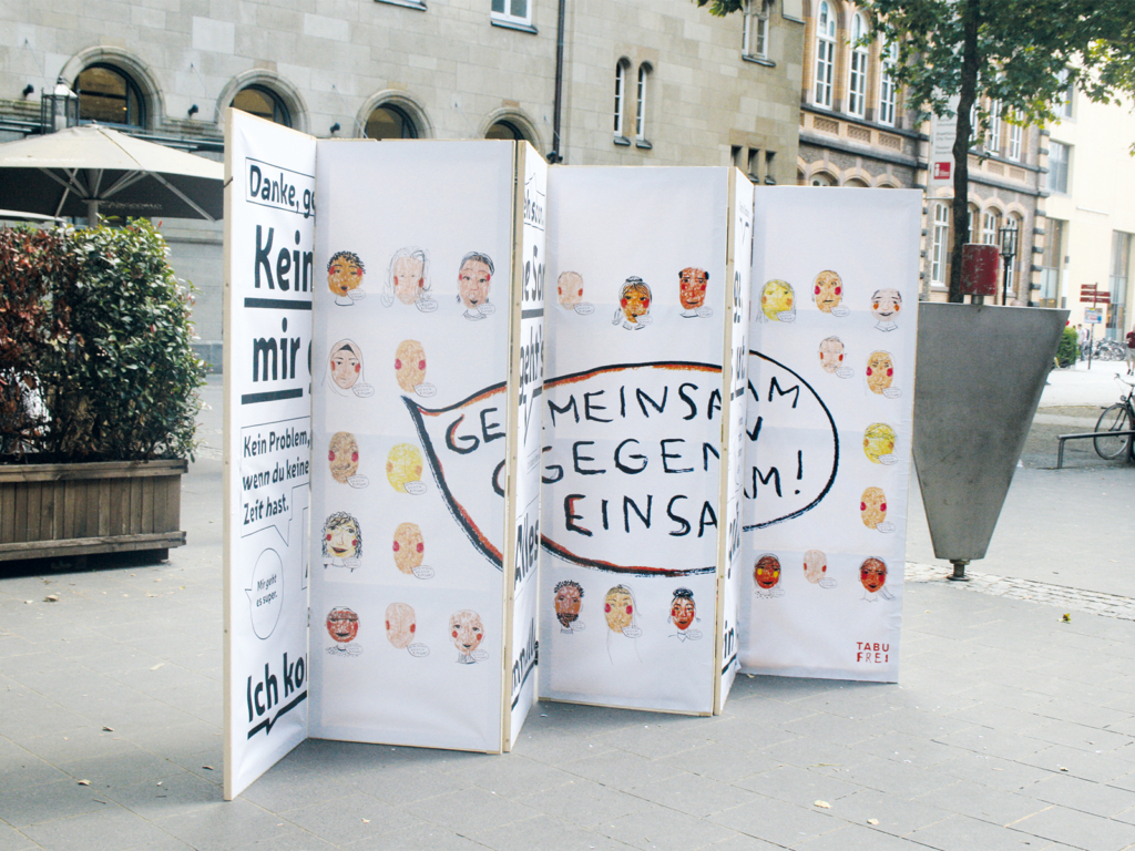The passersby could take off a brochure from the installation wall, that contained lots auf emotionally edited information about loneliness in our society. The aim was to turn the attention on the issues, long-term loneliness can cause and how a public dialogue can make change happen.