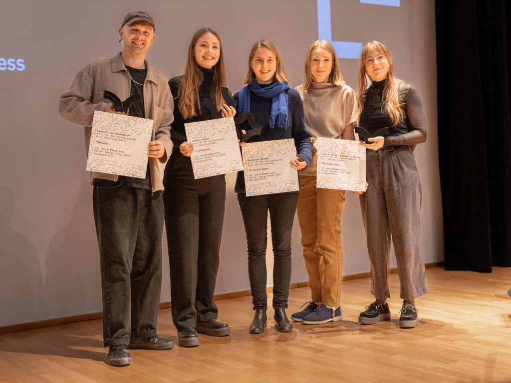 Der Kölner Design Preis ist eine der begehrtesten Auszeichnungen für Absolvierende der Kölner Gestaltungshochschulen. In diesem Jahr haben die ecosign — Akademie für Gestaltung, KISD/Köln International School of Design, Hochschule Macromedia und Rheinische Fachhochschule Köln (RFH) teilgenommen. Nach fast dreijähriger pandemiebedingter Pause findet in diesem Jahr wieder die Ausstellung aller nominierten Abschlussarbeiten im Museum für Angewandte Kunst Köln (MAKK) statt. Aus den nominierten Abschlussarbeiten wurden vier Projekte von einer unabhängigen Jury nominiert. Dank der großzügigen Förderung durch KölnBusiness wurde der 1. Preis mit 3.500 Euro, der 2. Preis mit 2.000 Euro und der 3. Preis, der in diesem Jahr zweimal vergeben wurde, mit jeweils 1.000 Euro dotiert. Zudem wurde erstmals ein mit 500 Euro ausgestatteter Publikumspreis ausgelobt.