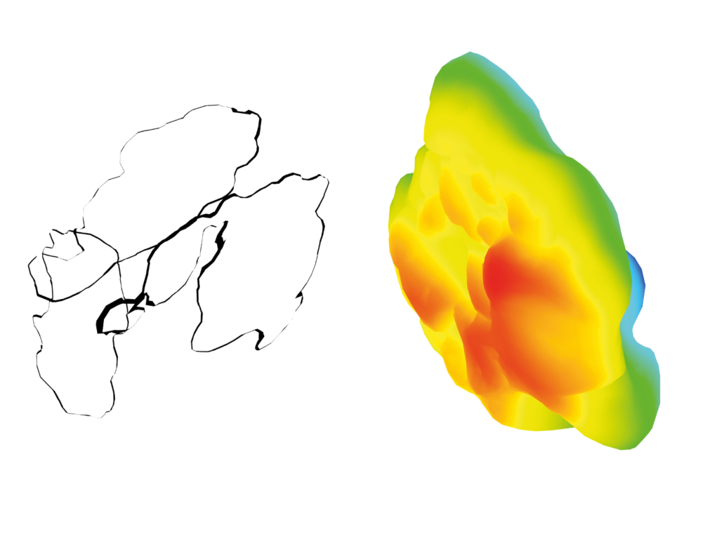 Chandra Sperle stellte die Hypothese auf, dass die visuellen Schriftzeichen lediglich Schnittflächen eines sich räumlich erstreckenden Körpers sind – ähnlich den Schnittbildern unserer menschlichen Körper bei einer Computertomographie. In seiner Arbeit ging er der Frage nach, wie sich durch räumlich agierende Schriftkörper die Art und Weise der Speicherung und Kommunikation von Informationen verändert und welche Rolle dies für unsere heutige Informationsgesellschaft haben könnte. Er untersuchte daher mittels verschiedener Experimente, wie »Schriftkörper« tatsächlich greifbar gemacht werden könnten und welche Rolle sie bei der Wahrnehmung von Schrift spielen.