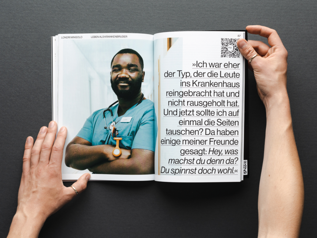 Auch Sanja Alessia Zündorf wurde für ihre Arbeit „POV-Mag“ mit dem dritten Platz ausgezeichnet. Mit Blick auf die vierte feministische Welle konzipierte, gestaltete und realisierte sie ein Magazin, das sich speziell an Männer richtet. In neun Interviews mit Expert:innen, Krankenpflegern, Vollzeit-Vätern sowie erfolgreichen Autorinnen lässt sie Männer zu Wort kommen und an der gesellschaftlichen Debatte teilhaben.