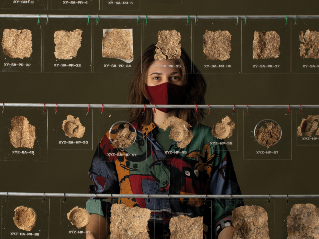 Die mit dem zweiten Platz prämierte Abschlussarbeit „Presskorn“ der KISD-Absolventin Theresa Tropschuh dreht sich um eine Lösung für die Endlichkeit irdischer Ressourcen. Theresa Tropschuh möchte eine Alternative zur Materialverschwendung unserer Konsumgesellschaft hin zu einer Kreislaufwirtschaft aufzeigen. Das entwickelte Material Presskorn soll nicht nur eine Alternative zu endlichen Rohstoffen aufzeigen, sondern auch ein schuldloses Konsumieren ermöglichen und den Startschuss für eine Materialwende in eine öko-soziale Gesellschaft abfeuern. Presskorn besteht zu 100 Prozent aus einem Reststoff der Bierproduktion und ist aus dem nachwachsenden pflanzlichen Rohstoff Gerste hergestellt. Es kann vor der Weiterleitung in die Biogasanlage unter anderem für Produkte wie einen Fahrradhelm, ein Bett oder auch Tierfutter verwendet werden.