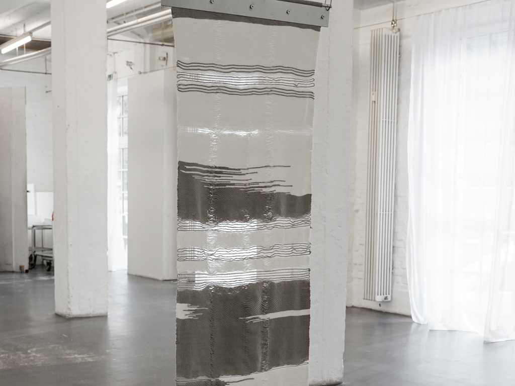 Lotta Hagedorn nähert sich dem textilen Medium als Phänomen von Grenze, Begrenzung und Entgrenzung. Ihre theoretische Arbeit greift das Konzept des Stoffwechsels von Gottfried Semper auf und kontextualisiert es mit textilen Raumbildungsprozessen in Kunst und Architektur des 20. und 21. Jahrhunderts – von der Textilkünstlerin Anni Albers, die am Bauhaus und am Black Mountain College Weberei lehrte, bis zum Design + Research Studio Limbo Accra aus Ghana, das unfertige Rohbauten mit raumgreifenden Textilien zu transformieren sucht.