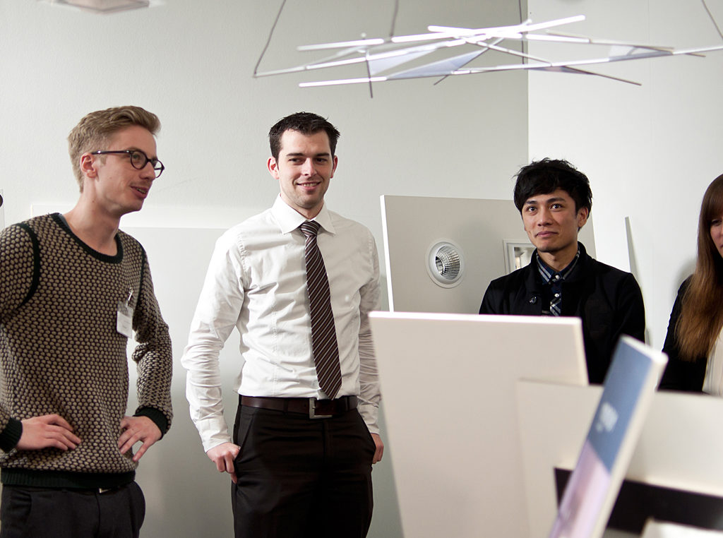 In einem ersten Kick-Off Meeting in der Trilux-Lichtakademie stellte der Lichttechniker Sebastian Ludwig die Vorzüge der OLED-Panels deutlich heraus: Effizient. Homogen. Hauchdünn. „Mit den OLEDs könnte theoretisch jede Fläche zum Leuchten gebracht werden.“, betonte der Projektleiter Prof. Hatto Grosse.