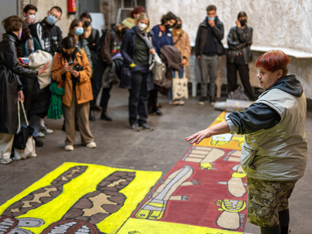 Kern des Projekts ist ein Workshop mit dem interdisziplinären Team Bärbel Lange, Jutta Pöstges und Lukas Hamilcaro. Bärbel Lange ist Künstlerin mit Lernschwierigkeiten und arbeitet zu den Themen Kunst, Inklusion und Stadtentwicklung. In ihren Zeichnungen untersucht sie »Schutztiere« und schafft Kreaturen, die Menschen und Orte beschützen sollen. Sie arbeitet im Kunsthaus KAT 18 in Köln. Jutta Pöstges ist Künstlerische Leiterin des Kunsthauses KAT 18 und mit dem Verein KUBiST e.V. Initiatorin des inklusiven »Kunsthauses Kalk«. Lukas Hamilcaro ist Architekt und arbeitet mit raumlaborberlin im Projekt »Kunsthaus Kalk«. Seit 2020 gehört Lukas Hamilcaro dem Collectif Etc in Marseille an.