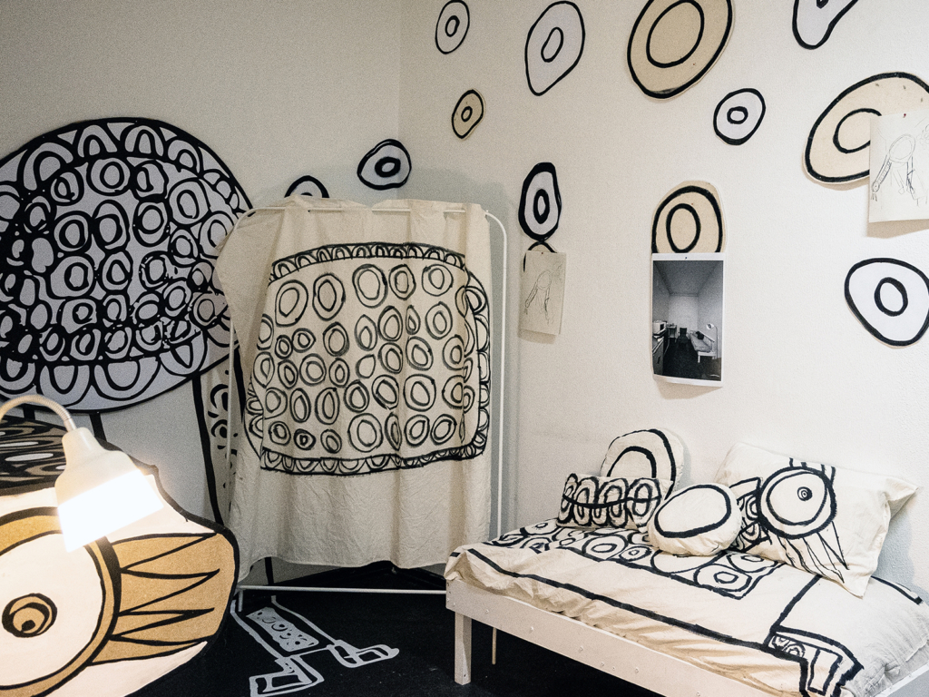 Das Projekt »Schutz – Räume, Tiere, Objekte« ist ein erster Schritt auf dem Weg zu einer inklusiven Akademie in Köln, in der Künstler:innen und Designer:innen mit und ohne Beeinträchtigung zusammenarbeiten. Es geht der Frage nach, wie es möglich ist, ein gestalterisches Terrain zu bereiten, das integrative Formen der gegenseitigen Unterstützung und Fürsorge fördert. Hierfür wurden Räume und Objekte untersucht und entworfen, die eine Schutzfunktion haben und ein solidarisches Zusammenarbeiten ermöglichen.