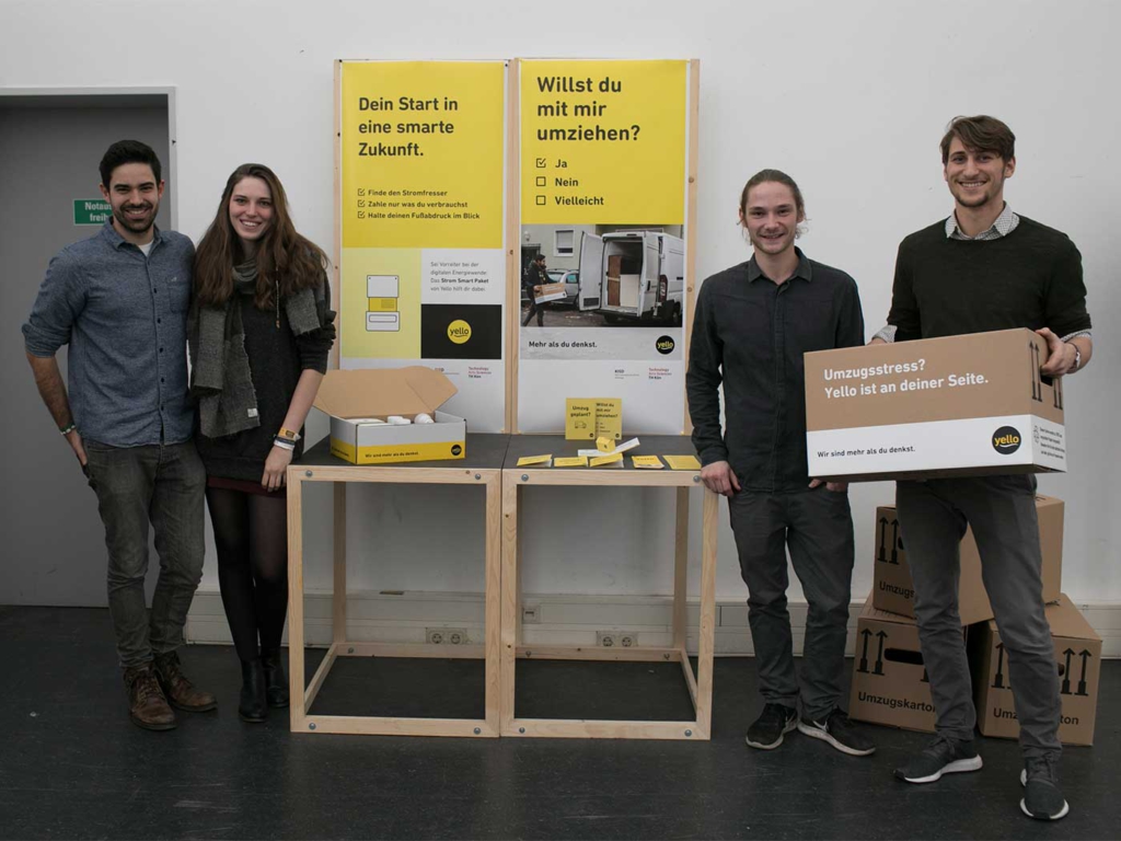 Wie kann man eine – manchmal negativ wahrgenommene – Erfahrung wie das Umziehen und das damit verbundene Wechseln des Stromanbieters in eine positive Erfahrung umwandeln? Ein Team von vier Studierenden entwickelte dafür einen Service, bei dem Yello seinen Kunden bei einem Umzug als Dankeschön kostenlose Umzugskartons zuschickt und für den Fall, dass sie Yello als ihren Stromanbieter behalten, sogar einen kostenlosen Umzugswagen stellt.