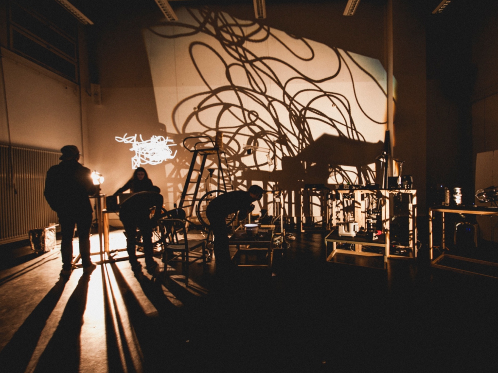 What is the “audiovisual character” of a thing? How can we sensually invent, re-interpret, and transform it within the context of a band? In December 2016, students of KISD became “The Hacking Orchestra” and digged deeper into the »principles of misuse« of objects and explored the modes of »instant playing«. The “Hacking Orchestra” invited its students and the public to an audiovisual live set on December 9, 2016 at KISD. And as it should be for a real band – there were blenders mixed, wardrobes kicked, razors effected, referee high seats sensorized, marbels synthesized, water amplified, and TVs destroyed.