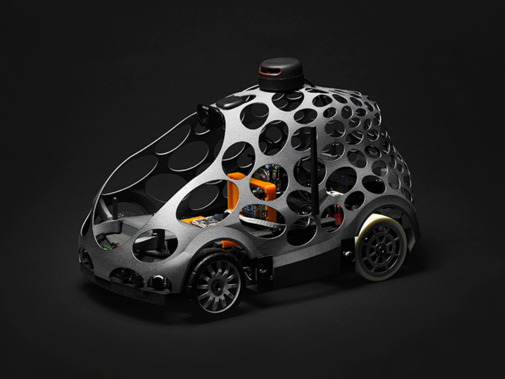 Bei „Vehicle Concepts“ ging es konkret um die Unterstützung eines Projektes, bei dem unter der Leitung von Prof. Dr. Tom Tiltmann und seinen Mitarbeitern Sensoren, Software und Hardware zur Erprobung des autonomen Fahrens entwickelt wurden. Die fiktive Fahrzeughülle sollte dabei einerseits die Outline eines Fahrzeugs markieren, andererseits mit ihrer offenen Struktur symbolisieren, dass wir es noch mit einem „traditionellen“ Fahrzeug zu tun haben, das Bild von konventionellem Karosseriedesign sich jedoch stark verändert oder gar auflöst. Neben der stylistischen Anmutung haben die offenen Durchbrüche praktische Vorteile: Durch sie hindurch können die Sensoren ihre Messungen unverfälscht vornehmen. Die Abbildungen zeigen das Projekt im Laborstadium. Das Fahrzeugmodell ist voll funktionsfähig, hat einen Elektroantrieb und dient bei Präsentationen zur Akquise von Forschungs- /Drittmitteln.