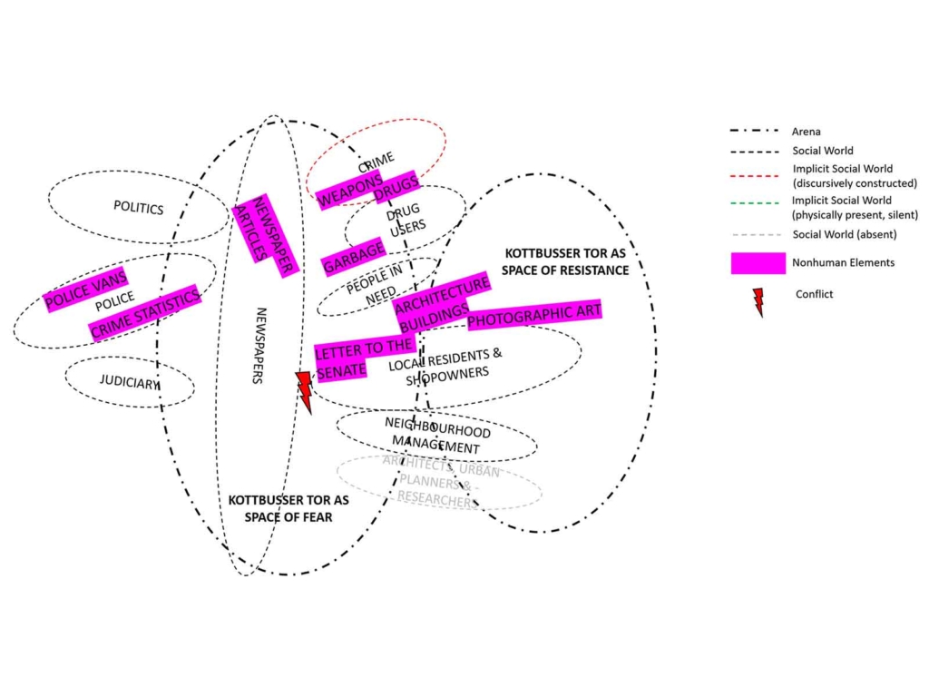 Urban spaces of fear have been a research subject of feminist urban studies since the 1980s. Those studies often dismissed approaches, which focused on the urban built environment because the root causes of urban fear, and urban crime cannot be located in nonhuman elements like buildings, streetlights or surveillance cameras. Following newer concepts which explicitly take the nonhuman into account when analyzing social situations, this talk offers insights into the ‘black box’ of the actual process of doing research in a contested field. How can we analyze spaces in all their complexity, including human actors, nonhuman elements, discourses, socio-cultural and political elements? How can we understand the production of knowledge as a political act? With the help of Adele Clarke’s Situational Analysis (2012), a recent approach in the sphere of qualitative research methods, we dive into these questions and discover how mapping-strategies can serve as helpful tools for complex, situated and relational analysis.