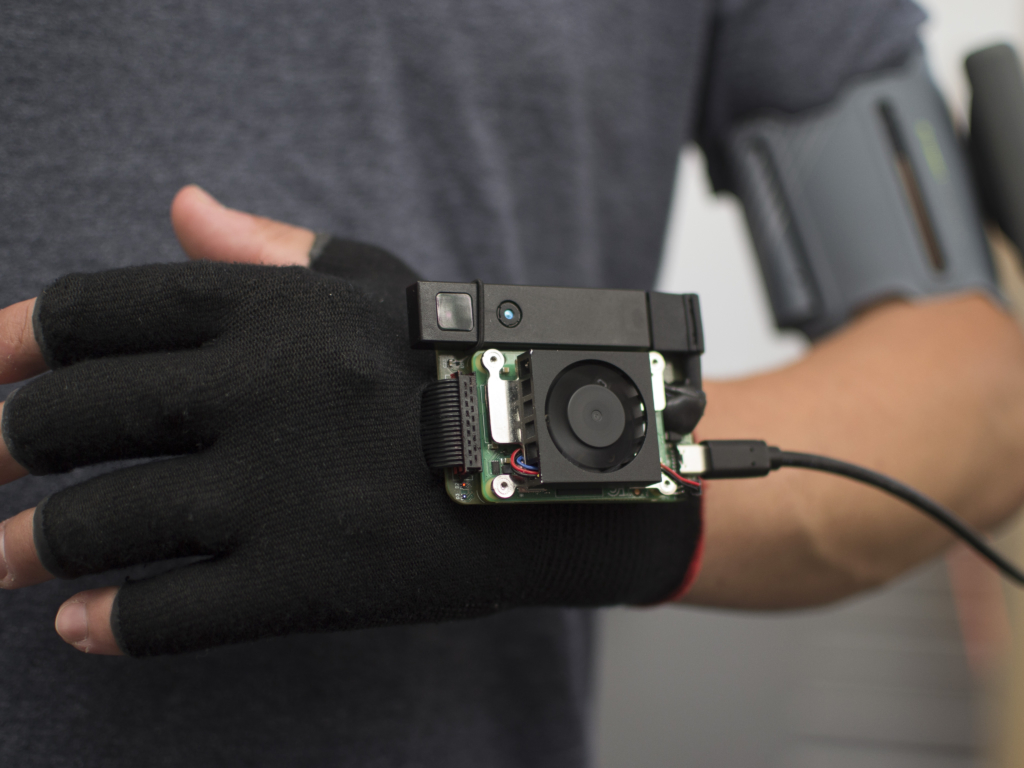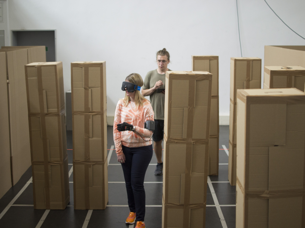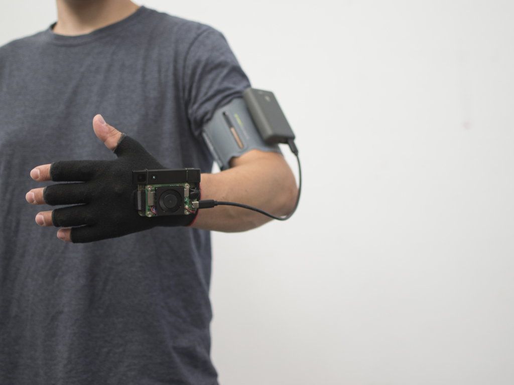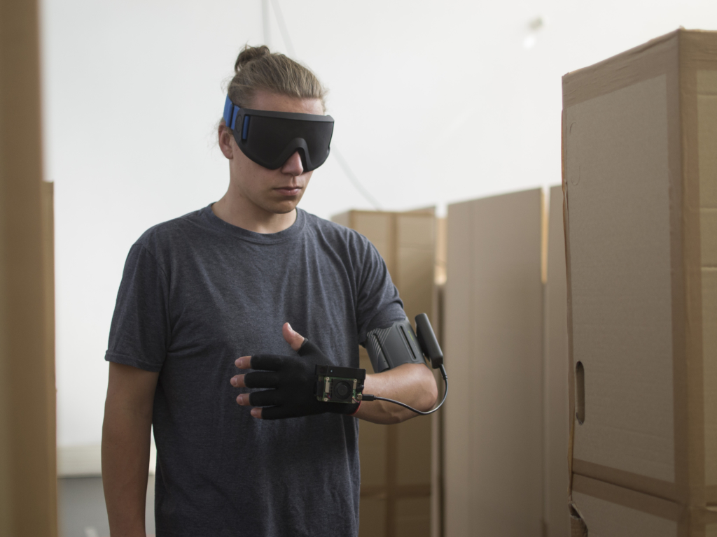 Bei dem 2018 von Kilian entwickelten Device handelt es sich um einen speziellen, mit Vibrationsaktuatoren ausgestatteten Handschuh, der das Bild einer 3D-Kamera als Vibrationsmuster auf den Handrücken projiziert und es damit Nutzer:innen erlaubt, die räumliche Beschaffenheit ihrer Umgebung haptisch zu erkunden. Der Handschuh macht sich dabei das Prinzip der “Sensorischen Substitution” zu Nutze: Dieses besagt vereinfacht, dass das Gehirn in der Lage sei, Sinnesreize, die aufgrund von Beeinträchtigungen der sensorischen Peripherie nicht wahrgenommen werden können, mittels einer anderen Sinnesmodalität aufnehmen bzw. substituieren zu können. Die Idee, auf diesem Weg blinden Menschen die Navigation und das Erkennen von Hindernissen zu erleichtern und ihnen somit den Alltag ein wenig zu erleichtern, blickt auf eine lange Tradition zurück. Doch trotz zahlreicher Forschungsprojekte und Entwicklungen gibt es bis heute keine weitverbreiteten Hilfsmittel, die das Konzept in die Praxis übersetzen konnten. An dieser Stelle setzte Killians Bachelorarbeit an: Der Handschuh sollte günstiger sein, als bisherige Entwicklungen, sollte schnell erlernbar sein, ein hohes Maß an Nutzungsfreude auslösen und nicht zuletzt ästhetischen Ansprüchen gerecht werden. Die Arbeit und die Baupläne wurden zudem als Open Access und Open Source / Hardware veröffentlicht, um die Erkenntnisse der Öffentlichkeit zur Verfügung zu stellen und Anreiz für weitere Forschung am Thema zu schaffen.