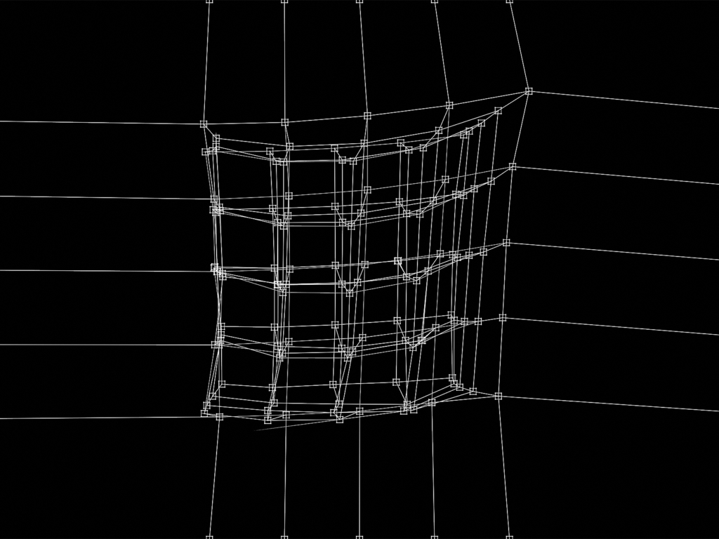 Each intersection of the grid is equipped with a small orange ball to allow for the capturing of the grid’s dynamics and spatial deformation via video-recordings. Subsequently, these points serve to digitally trace the interrelated behavior of the construction. This enables reorganizing the intersection points to their original positions in a now digital euclidean space. Through this forceful intervention of re-abstracting the grid back into geometrical tension, the places captured by the camera appear distorted—the rigidity of the grid however is restored. This effectively generates consistency between different locations, enabling the possibility of synthesizing multiple situated perspectives to form a greater picture, while preserving their specificity.